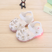 2017夏新款1-2-3岁女宝宝凉鞋婴儿凉鞋儿童学步鞋包头带灯童鞋
