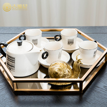 后现代新古典欧式样板间客厅家居装饰品镜面古铜色创意托盘摆件