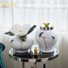 新中式新古典客厅样板间新房家居装饰品小鸟陶瓷创意摆件储物罐