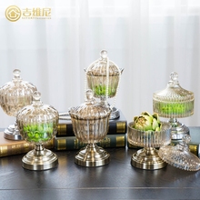欧式透明水晶玻璃糖果罐美式储物罐装饰器皿带盖创意客厅饰品摆件