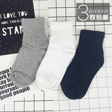 韩国日系简约原宿黑白纯色中筒袜子纯棉 春夏运动男女情侣短袜子