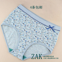 4-10条AB女士纯棉印花高腰宽松三角内裤中年妈妈中老年人全棉0182