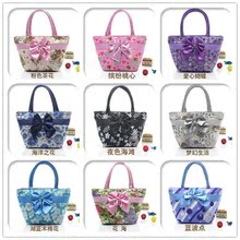 女包 新款 时尚小包 棉布小包绸锻蝴蝶结菱格布包可爱手提包包袋