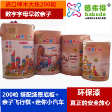 芭布得200块数字木制大积木1-2-3-6周岁宝宝儿童早教益智力玩具
