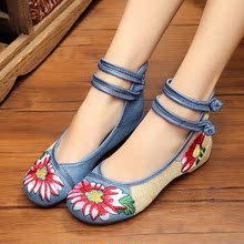 新款秋季老北京布鞋女鞋平跟绣花鞋内增高民族风软底妈妈鞋女单鞋
