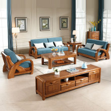 全实木新中式沙发组合现代简约榆木沙发客厅家具环保木质布艺沙发