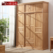 新款实木衣柜橡胶橡木 现代中式简易四门推拉收纳衣柜挂衣杆特