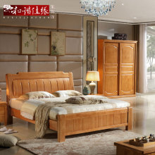 实木床 双人床1.8米 1.5米婚床 中式现代简约 橡木床 高箱床