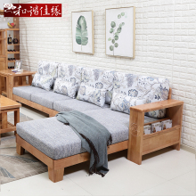 实木沙发组合 新中式转角贵妃木架布艺沙发橡木客厅可拆洗家具