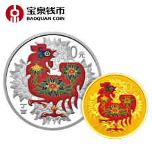 宝泉钱币.金总发行. 2017年鸡年彩色金银币纪念币 3克金+30克银