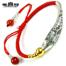 思无邪中国风银鱼金珠 足金转运珠黄金手链 本命年红线手链银管