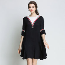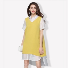 胖mm夏装新款2017加大码女装时尚微胖妹妹假两件衬衫宽松连衣裙