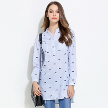 圆领衬衫女长袖大码女装2017春装新款韩版上衣百搭直筒中长款衬衣
