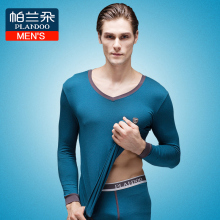 帕兰朵低领秋衣秋裤男 莫代尔面料保暖内衣男青年薄款V领打底套装