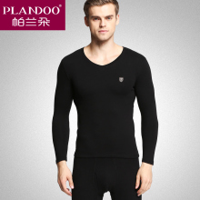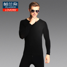 帕兰朵内衣男士莫代尔 保暖内衣套装修身中厚款V领纯色打底衫冬季