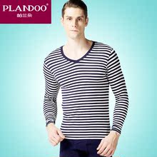 帕兰朵内衣男 莫代尔时尚条纹V领棉质秋衣秋裤男薄款保暖内衣套装