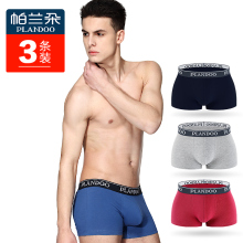 帕兰朵男内裤平角裤 纯棉青年中腰简约风运动宽松U凸四角3条装