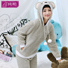 卡通睡衣女士秋冬加厚法兰 珊瑚绒睡衣套装连帽可爱家居服睡衣裤