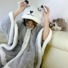 性感抹胸法兰绒可穿浴巾浴袍女 春夏睡衣珊瑚绒美容院浴裙女浴衣
