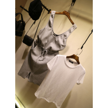 韩版两件套休闲新品发布 修身纯棉短袖打底T恤连衣裙套装 女装