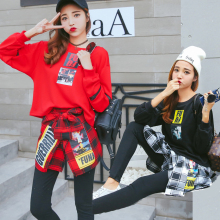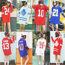 韩国ulzzang长袖t恤球衣原宿学院风宽松bf中长款连衣裙卫衣女潮秋