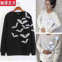 拍打发亮夜光闪光衣服LED带灯触摸发光翅膀卫衣套头t恤男女情侣装