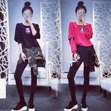 爵士舞服装假两件打底裤女学生嘻哈舞蹈街舞hiphop练功服现代舞潮