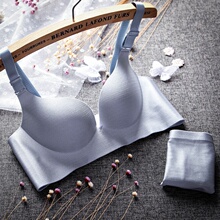 莉妃一片式无痕文胸套装无钢圈聚拢小胸罩厚薄款调整型内衣套装