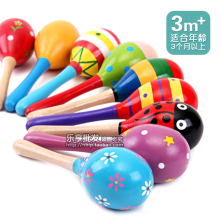 小号手摇棒儿童手摇铃铛婴幼儿彩色木质沙锤早教益智玩具宝宝喆