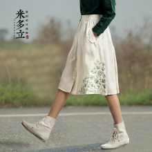 米多立棉麻半身裙 2017春新款文艺范复古刺绣A字亚麻中长款女裙子