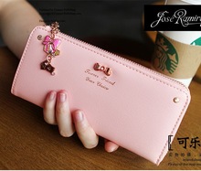 2015新款韩版原创复古时尚潮可爱蝴蝶结吊坠女士钱包长款皮夹包邮