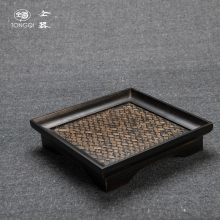 仝器茶具四方小茶海茶台托盘茶托擦漆竹编功夫茶道小茶盘实木茶托