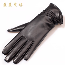 薇薇爱琪 真皮手套女士山羊皮冬季加厚加绒触屏保暖冬季骑车新款