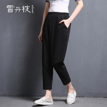 雪丹枝2017夏装新款文艺范棉麻九分裤亚麻直筒裤大码显瘦裤子女