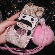 iPhone6s苹果6plus手机壳7贴珍珠水钻5se硅胶套獭兔毛防摔软壳女