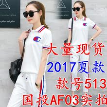 时尚polo短袖跑步运动服两件套2017夏季新款女装纯棉休闲运动套装