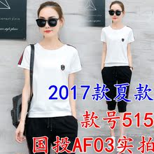 时尚休闲套装女装2017夏装新款韩版气质修身短袖T恤两件套春夏季