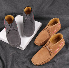 外贸尾货男鞋 超好品质 牛皮平底系带休闲软底反绒英伦高帮男鞋