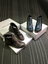 2016韩版新款真皮高跟女靴圆头粗跟高跟短靴女侧拉链印花休闲鞋潮