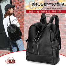 Inme2017春夏新款大容量真皮头层牛皮双肩包韩版休闲书包背包女包