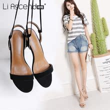 2017新款真皮罗马凉鞋女夏粗跟韩版流苏一字带绑带羊皮时尚高跟鞋