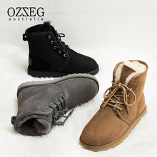 OZZEG冬季羊皮毛一体加绒保暖平底防滑雪地短靴情侣男女款3238