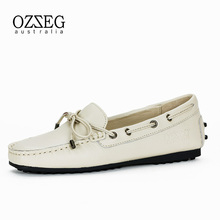OZZEG豆豆鞋真皮女 夏季潮蝴蝶结透气休闲女士浅口瓢鞋 平底单鞋
