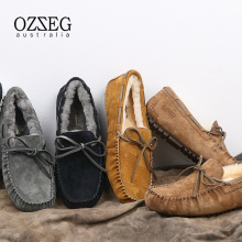 OZZEG豆豆鞋女秋冬季保暖加绒皮毛一体孕妇妈妈羊毛真皮磨砂棉鞋