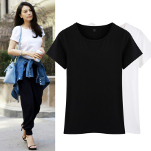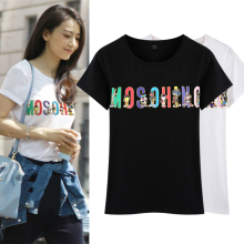 晶鑫悦2017夏季韩版字母印花純色圆领棉T恤女短袖修身显瘦体恤衫