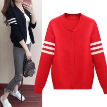 晶鑫悦针织衫女开衫V领长袖百搭外搭上衣宽松休闲短款毛衣外套