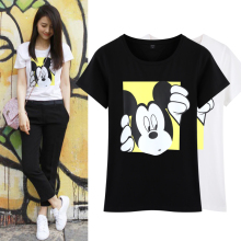 晶鑫悦2017夏季新款甜美印花t恤女装短袖圆领修身百搭上衣体恤女