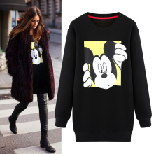 晶鑫悦2016冬季新款加绒加厚中长款保暖卡通印花细毛绒百搭卫衣女