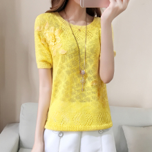 晶鑫悦2017夏季新款薄款镂空宽松针织T恤大码罩衫网衫套头毛衣女