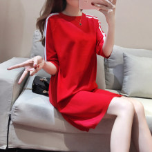 晶鑫悦2016针织衫女套头圆领宽松蝙蝠袖中袖开叉条纹休闲毛衣上衣